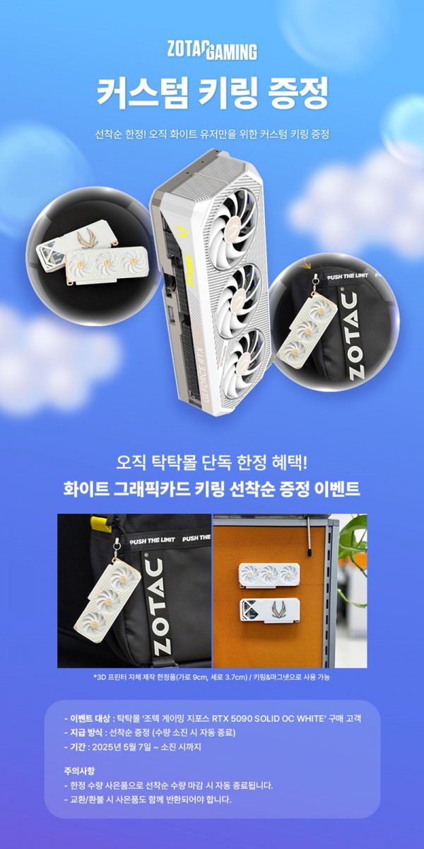 조텍코리아, 세상에 하나 뿐인 수제 키링 증정! 조텍 지포스 RTX 50 시리즈 화이트 제품 구매자 대상 이벤트 진행
