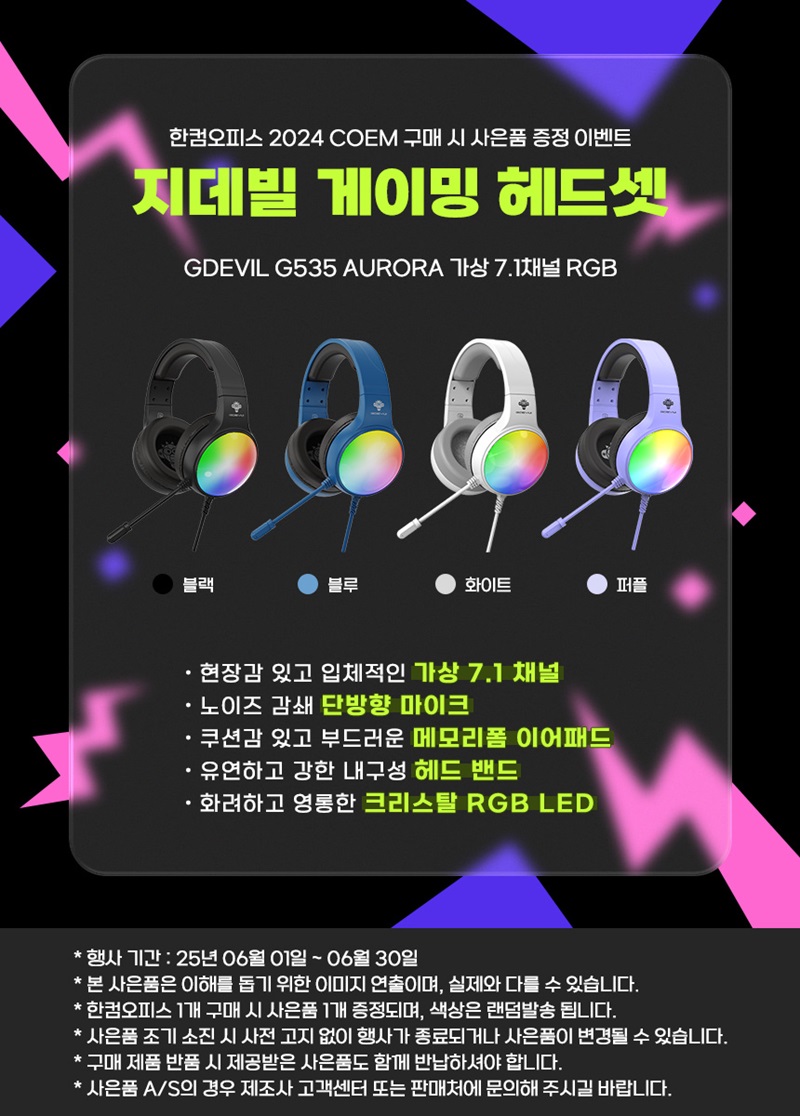 해당 프로모션에 증정되는 사은품은 지데빌 사의 게이밍 헤드셋으로 강렬하고 역동적인 사운드로 게임의 몰입감을 느낄 수 있는 제품이다. 가상 7.1 채널 서라운드를 탑재하여 생동감 넘치는 입체적인 음향 효과를 경험할 수 있으며, 주변 소음을 차단하는 동시 사용자만의 보이스를 담아낼 수 있는 단방향 마이크도 탑재되었다.
