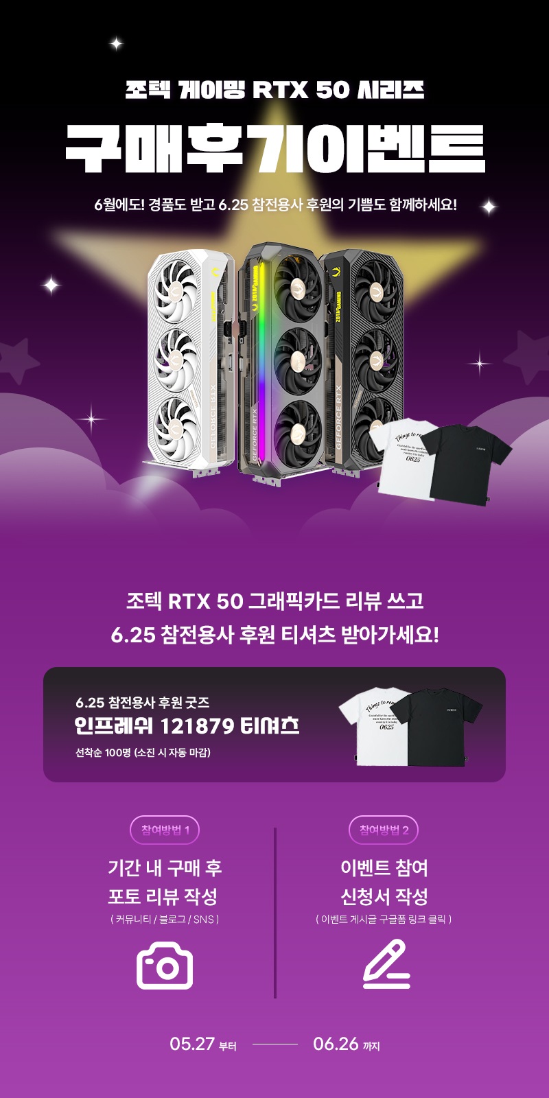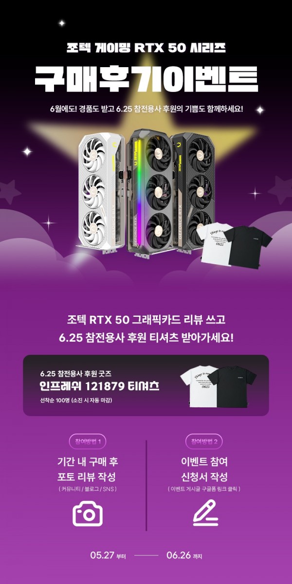 PC | 조텍코리아, 제품 사고 6.25 참전 용사 후원도 하고! 조텍 RTX 50 시리즈 후기 이벤트 진행