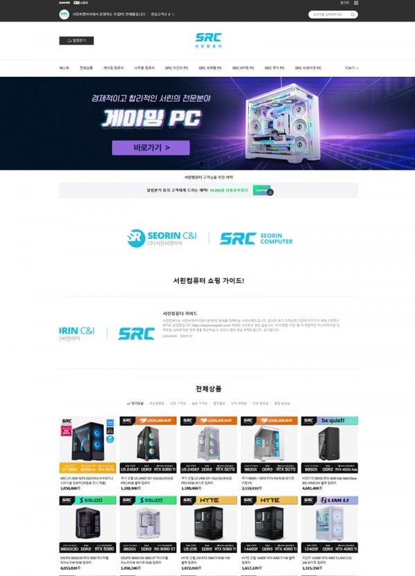 서린컴퓨터, 완제품 PC 전문 온라인몰 ‘서린컴퓨터’ 네이버 스마트스토어 입점