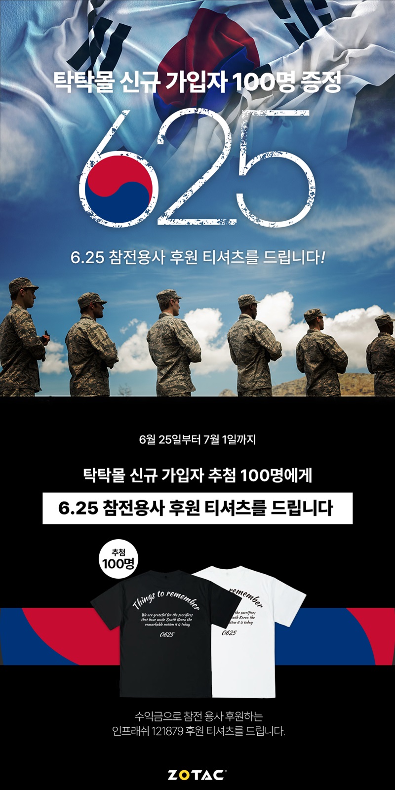 조텍, 조텍코리아, ZOTAC, ZOTAC Korea, 6.25, 맞아, 신규, 가입자, 대상, 참전, 용사, 후원, 티셔츠, 증정, 이벤트, 진행