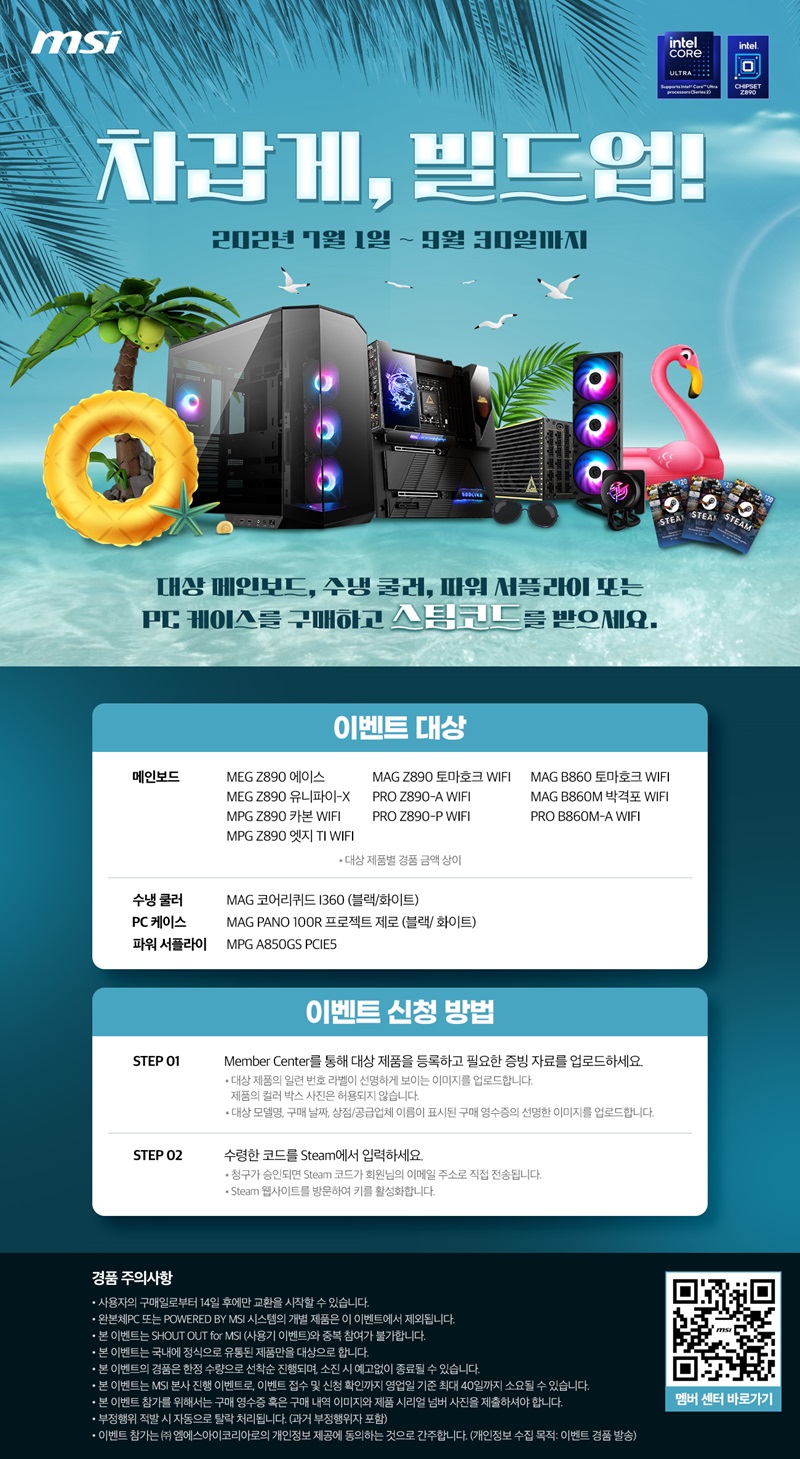 (주)엠에스아이코리아, 엠에스아이, MSI, MSI Korea, 메인보드, 파워, 수냉쿨러, 케이스, 구매자, 대상, 최대, 9만원, 스팀 코드, 증정, 이벤트, 진행