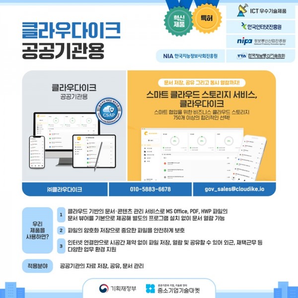 IT | 클라우다이크, 공공기관용 스마트 클라우드 스토리지 서비스 ‘혁신제품’ 지정