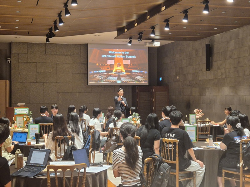 참가자들은 각자 세계정부, 산업계, 시민단체 등 다양한 사회 주체 역할을 맡아 객관적인 데이터에 기반한 정책 시나리오를 설계하고 지구 평균 기온 상승을 1.5~2도 이내로 제한하는 현실적인 전략을 도출했다.