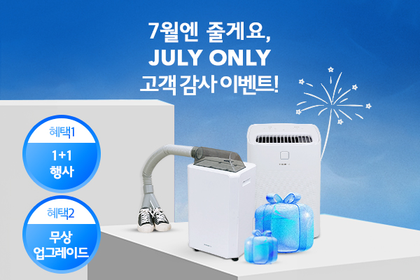 웨이코스의 생활가전 전문 브랜드 씽크에어가 습한 여름 날씨에 맞춰 ‘7월엔 줄게요(July only)’ 고객 감사 이벤트를 진행한다. 이번 이벤트는 7월 한 달간 진행되며, 제습기를 구매하는 고객에게 특별 할인 혜택과 추가 서비스를 제공한다.