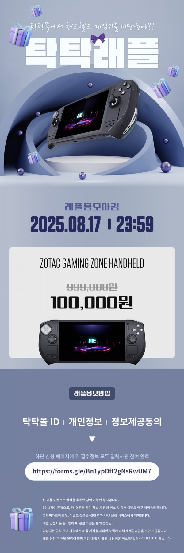 조텍, 조텍코리아, ZOTAC, ZOTAC Korea, 단돈, 10만원에, OLED, 핸드헬드 PC를!, 조텍 GAMING ZONE, 래플, 이벤트, 진행