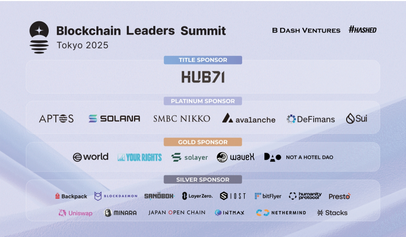 이 밖에도 솔레이어(Solayer), 웨이브엑스(WaveX), 월드(World), 백팩익스체인지(Backpack Exchange), 블록데몬(Blockdaemon), 휴머니티 프로토콜(Humanity Protocol), 인트맥스(INTMAX), 이오스트(IOST), 레이어제로(LayerZero), 미나라(Minara), 네더마인드(Nethermind), 프레스토(Presto), 스택스(Stacks), 더 샌드박스(The Sandbox), 유니스왑(Uniswap) 등 글로벌 유망 웹3 프로젝트와 일본 내 주요 웹3 기업인 낫어호텔다오(NOT A HOTEL DAO), 유어라이츠(YOUR RIGHTS), 비트플라이어(bitFlyer), 재팬오픈체인(Japan Open Chain)이 스폰서로 참여한다. BLS 도쿄 2025는 이들의 참여를 통해 일본과 글로벌 웹3 생태계를 입체적으로 연결하는 종합 플랫폼으로서의 역할을 확대할 계획이다.