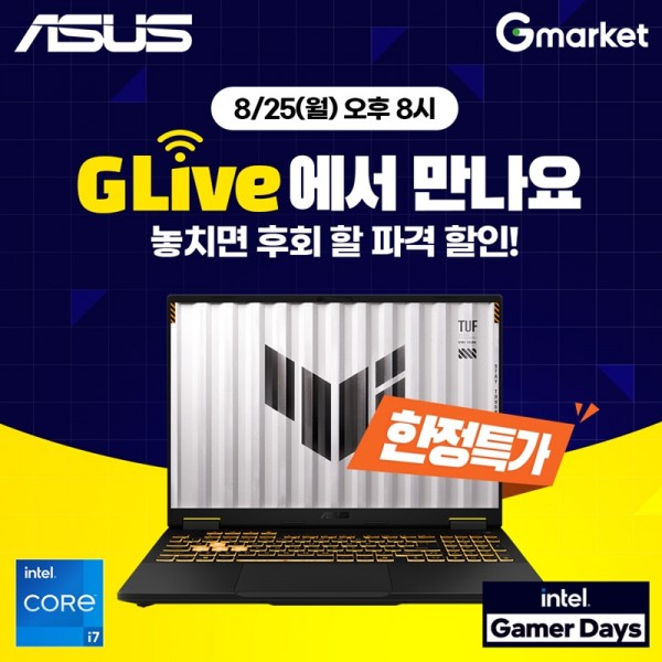 PC | 에스라이즈, 25일 오후 8시 지마켓 인텔 게이머데이즈 라이브방송에서 ASUS TUF Gaming F16 단독 혜택 제공
