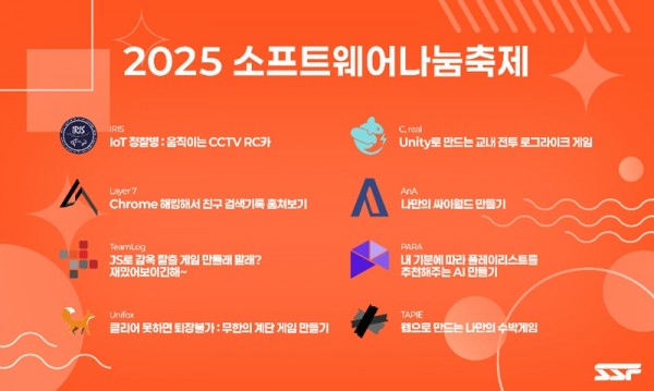 이번 행사는 용산구청과 사이버가디언즈의 후원으로 열리며, 재학생들이 직접 기획하고 운영하는 체험 중심의 소프트웨어 교육 축제다. SSF25에는 정보보호과 및 소프트웨어과 소속 8개 전공 동아리가 참여해 다양한 주제의 캠프를 운영한다. △해킹 △인공지능 △게임 개발 △웹·앱 프로그래밍 등 각 분야의 특성을 살린 체험 프로그램이 마련돼 중학생들이 쉽게 배우고 직접 제작해 보는 기회를 제공한다.