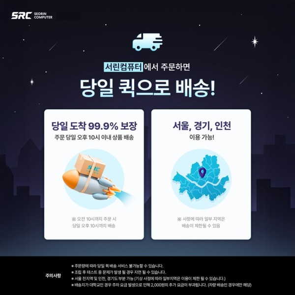 서린컴퓨터, seorincni, 오전, 10시까지, 주문 시, 당일, 오후 10시까지, 배송하는, 퀵배송, 시작