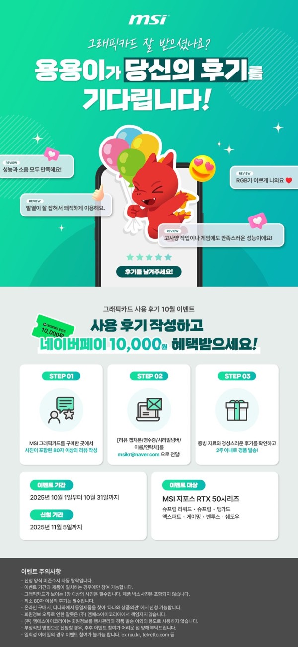 PC | MSI, 추석에도 1만원! 지포스 RTX 50 포토 후기 이벤트 진행