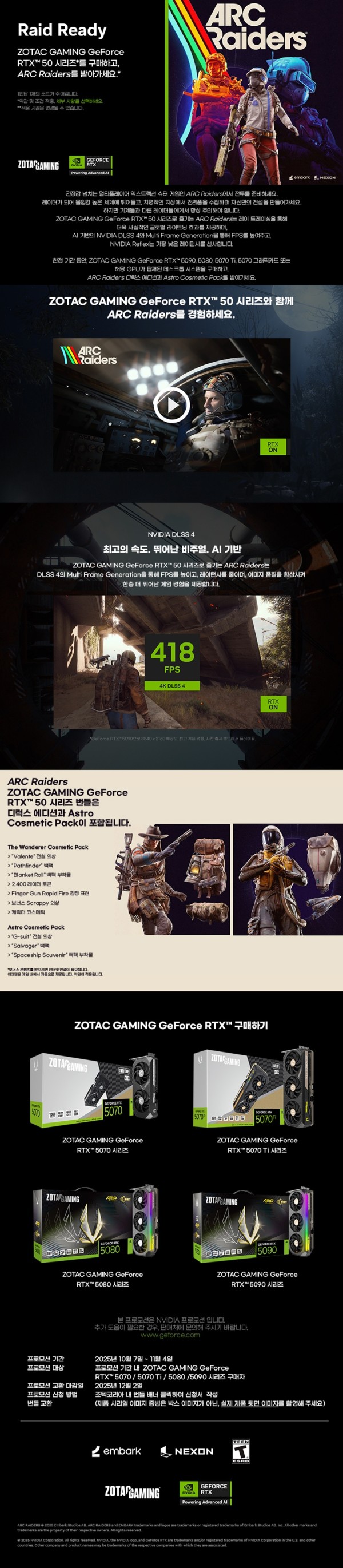 조텍, 조텍코리아, ZOTAC, ZOTAC Korea, 지포스 RTX 5070, 이상, 아크 레이더스, 증정, 게임, 번들, 프로모션, 진행