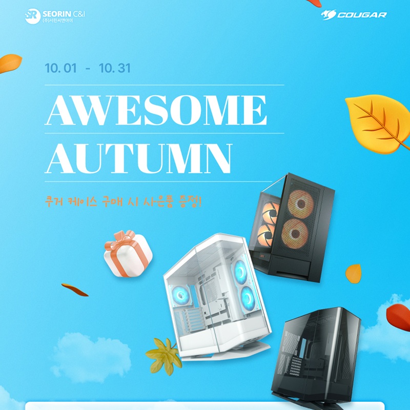 컴퓨터 관련 주요 부품 수입 유통 전문 업체 서린씨앤아이(대표: 전덕규 www.seorincni.co.kr)가 쿠거(COUGAR) PC 케이스 구매 고객을 대상으로 사은품을 증정하는 10월 프로모션을 진행한다. 이번 행사는 2025년 10월 1일부터 10월 31일까지 진행되며 수량 소진 시 조기 종료된다.