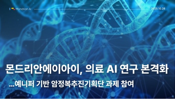 인공지능(AI) 플랫폼 기업 몬드리안에이아이(대표 홍대의)가 자사 AI 플랫폼 ‘예니퍼(Yennefer)’를 기반으로 의료 분야 AI 연구 및 사업화를 본격 확대한다. 회사는 최근 암정복추진기획단이 발주한 의료 AI 연구 과제에 참여해 본격적인 연구를 진행 중이라고 밝혔다.