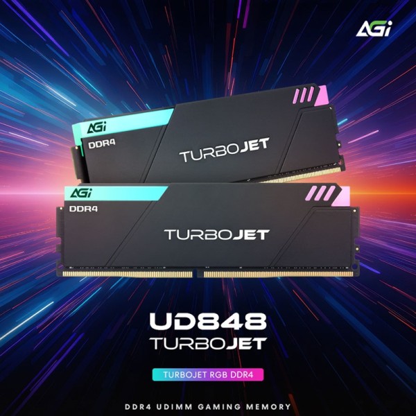 AGI TURBOJET RGB UD848 시리즈는 데스크톱 플랫폼을 위한 DDR4 게이밍 메모리로 동작 클럭 3600MT, CL18-22-22-42 타이밍, 동작 전압 1.35V 설정을 갖춘 오버클럭 메모리다. 32GB 듀얼 채널 키트 구성을 지원해 고성능 게이밍 PC와 크리에이터용 시스템 모두에 대응한다.