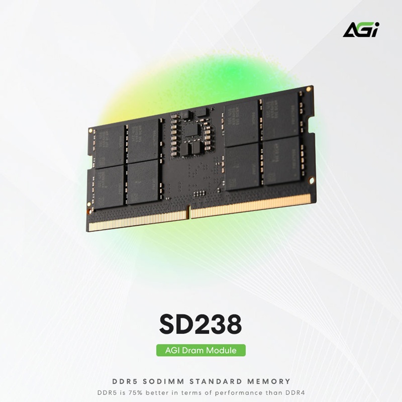 AGI DDR5-5600 CL46 SD238 시리즈는 DDR5 규격과 5600MT/s 동작 속도, CL46 타이밍을 지원하는 고성능 SO-DIMM 메모리다. 16GB와 32GB 단일 모듈로 구성되며, 동일 용량 두 개를 구성해 듀얼 채널 환경을 구축할 경우 고해상도 게임, 영상·사진 편집, 다중 작업 환경에서 보다 높은 메모리 대역폭을 확보할 수 있도록 설계됐다.