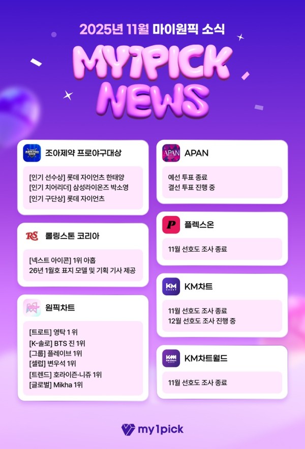 IT | 마이원픽 11월 결산 발표… 드라마·스포츠·매거진까지 팬 참여 콘텐츠 확장 본격화
