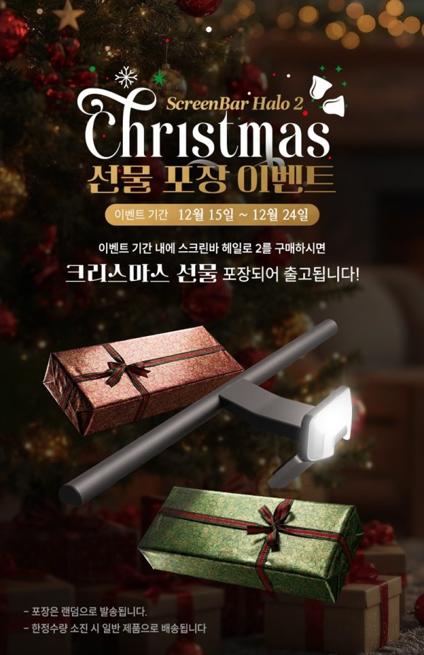 이번 이벤트는 2025년 12월 15일부터 12월 24일까지 진행되며, 행사 기간 내 스크린바 헤일로 2를 구매한 고객을 대상으로 별도의 신청 없이 크리스마스 선물 포장이 적용된 상태로 제품이 출고된다. 연말 선물 수요가 높은 시즌을 고려해, 제품을 받는 즉시 선물로 전달할 수 있도록 기획된 것이 특징이다.