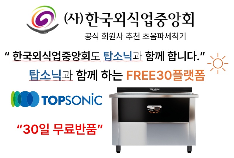 초음파세척기 전문기업 탑소닉은 2026년 1월부터 외식업 생태계의 리스크를 기업이 부담하는 ‘FREE30 플랫폼’을 론칭한다고 23일 발표했다.