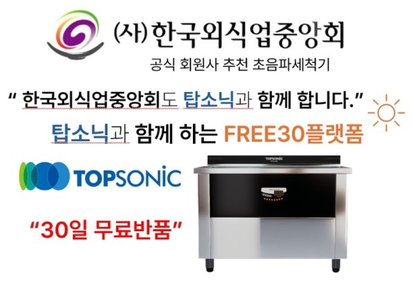 탑소닉, topsonic, 초음파세척기, 외길, 25년, 송용섭, 회장, 외식업계, FREE30, 플랫폼, 동참, 요청