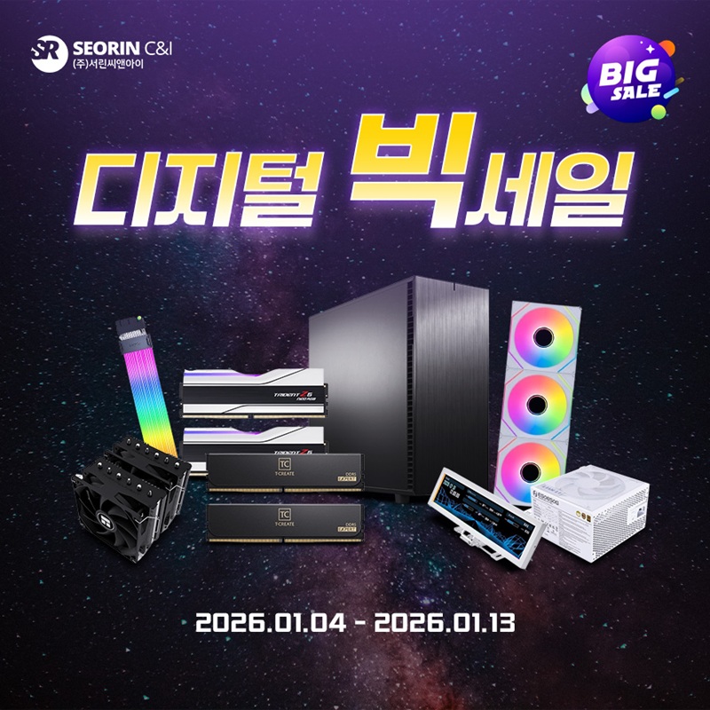행사 상품과 상세 조건은 G마켓 내 디지털 빅세일과 서린씨앤아이 판매자 샵 페이지(서린씨앤아이 전체상품)에서 확인할 수 있다. 서린씨앤아이는 신년을 맞이하여 PC 업그레이드 수요가 증가하는 시기에 맞춰, 온·오프라인 유통 채널에서 다양한 프로모션을 이어간다는 계획이다.