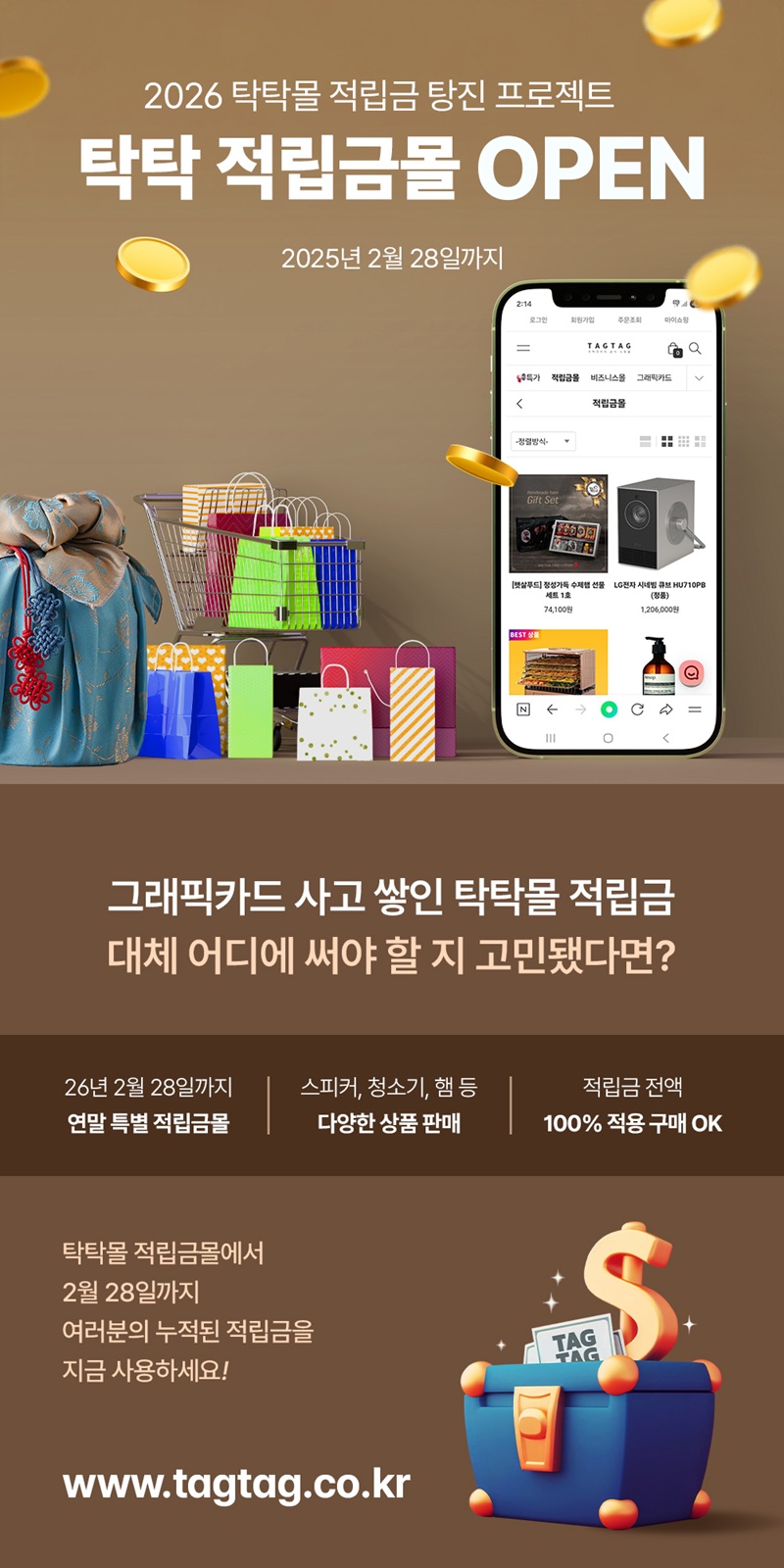 설을 맞아 오픈된 ‘조텍 적립금몰’은 조텍코리아 공식몰 ‘탁탁몰(www.tagtag.co.kr)’에서 만날 수 있다. 탁탁몰에서 조텍 그래픽카드 등을 구매하고 적립된 포인트를 사용하여 탁탁몰 내 적립금몰에서 구매 한도 제한 없이 100% 사용할 수 있다. 적립금몰에서는 스피커, 청소기, 햄 세트 등 다양한 타입으로 구성된 제품들을 만나볼 수 있으며, 일반 회원과 비즈몰 회원 관계없이 구매가 가능하다.