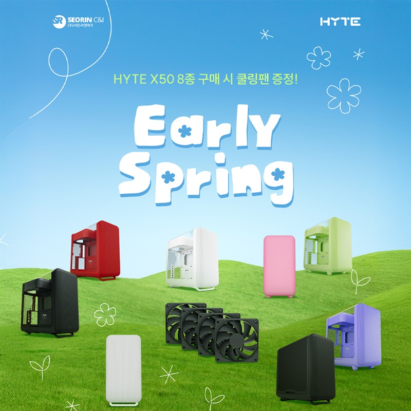 컴퓨터 관련 주요 부품 수입 유통 전문 업체 서린씨앤아이(대표: 전덕규 www.seorincni.co.kr)가 다가오는 봄 시즌을 맞아 HYTE의 차세대 PC 케이스 X50 시리즈 구매 고객을 대상으로 얼리 스프링(Early Spring) 증정 프로모션을 진행한다고 밝혔다. 이번 프로모션은 HYTE(하이트) X50 시리즈 구매 고객을 대상으로 사은품 증정 프로모션을 진행한다.