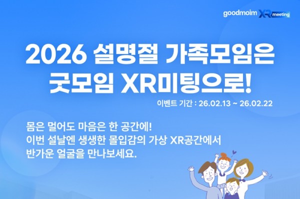 엘림넷(대표 한환희)은 설 명절을 맞아 ‘굿모임 XR미팅’ 서비스를 2월 13일부터 22일까지 전면 무료로 개방한다고 13일 밝혔다.