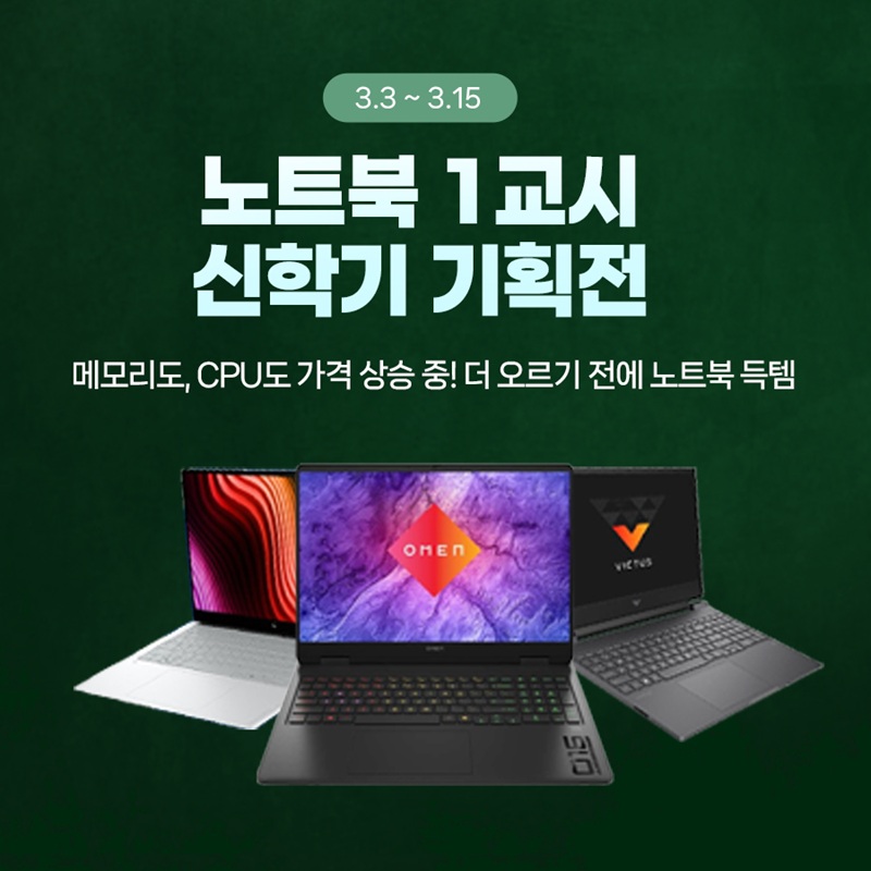 이번 프로모션에서는 13분기 연속 1위를 기록 중인 HP 게이밍 노트북 ‘빅터스 15’와 ‘오멘 16’을 비롯해, 업무·학습·일상용으로 적합한 ‘HP 옴니북 5 16’ 등 HP 베스트셀러 노트북을 중심으로 선보인다.