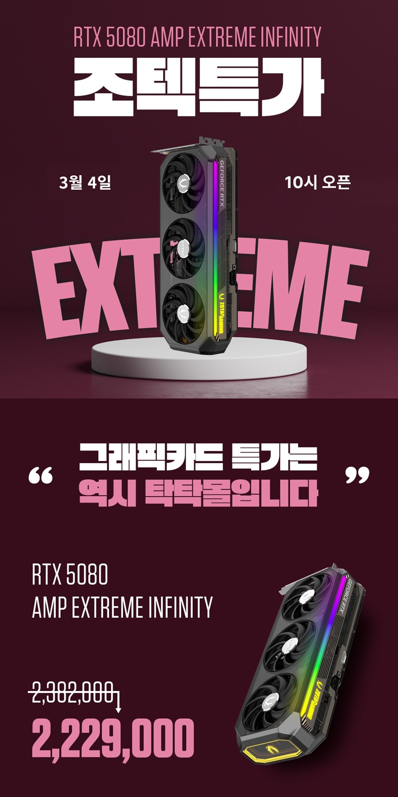 조텍, 조텍코리아, ZOTAC, ZOTAC Korea, ZOTAC GAMING GeForce RTX 5080 AMP Extreme Infinity, 그래픽카드, 특가, 양일간, 진행