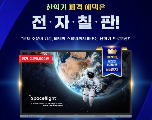 이번 공동 프로모션은 교재 주문, 정산, 고객 관리 기능을 통합 제공하는 웅진세이브원과 벤큐의 디지털 전자칠판 솔루션을 결합해, 교육기관이 콘텐츠 운영과 수업 환경 개선을 동시에 추진할 수 있도록 기획됐다.