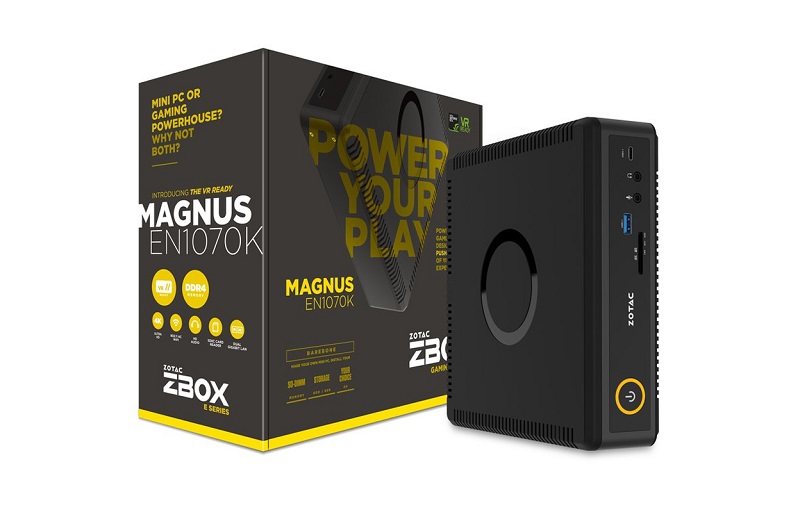 조텍의 게임용 미니PC 시리즈인 ‘MAGNUS EN1070K’는 지포스 GTX 1070 8GB 그래픽과 최신 인텔 7세대 카비 레이크(Kaby Lake) 코어 i5-7500T 프로세서가 탑재된 미니 컴퓨터로, 네이티브 4K 출력, VR 게이밍까지 구동할 수 있는 하이엔드 게이밍 미니 PC이다.