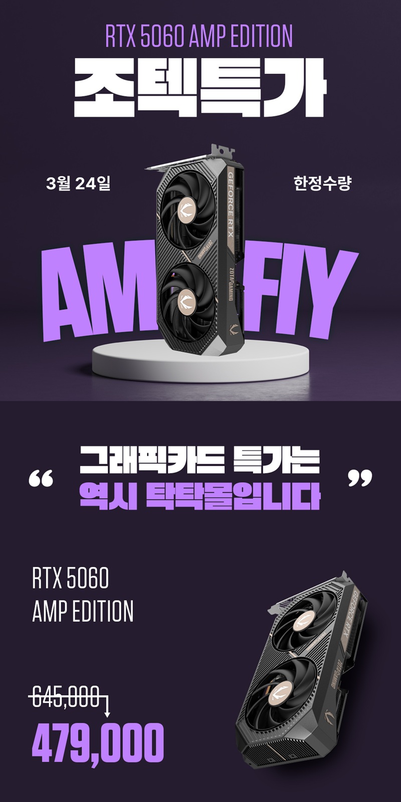 조텍, 조텍코리아, ZOTAC, ZOTAC Korea, 지포스 RTX 5060 AMP, 그래픽카드, 수량, 한정, 특가, 진행