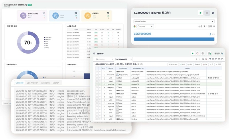 이와 함께 투비소프트는 AI 기반 테스트 자동화 솔루션인 ‘TESTPro’ 출시를 통해 애플리케이션 품질 관리 영역까지 플랫폼 경쟁력을 확장했다.