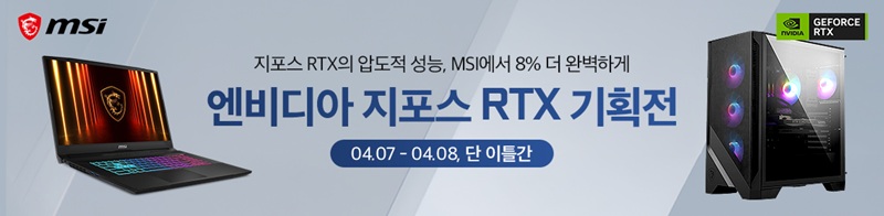 엠에스아이코리아(http://kr.msi.com, 대표 공번서)는 4월 7일 화요일부터 4월 8일 수요일까지 단 이틀간, 엔비디아 지포스 RTX 50 그래픽카드를 탑재한 MSI 데스크탑 및 노트북 라인업을 대상으로 특별 기획전을 진행한다.