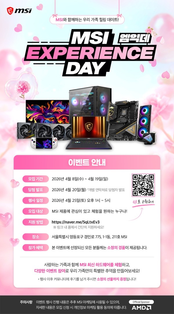 MSI 코리아 관계자는 “5월 가정의 달을 기념해 MSI를 사랑해 주시는 고객들께서 가족과 함께 특별한 추억을 쌓으실 수 있도록 이번 행사를 기획했다”며, “제품을 체험하며 가족이 하나 되는 뜻깊은 시간이 되길 바란다”고 전했다.