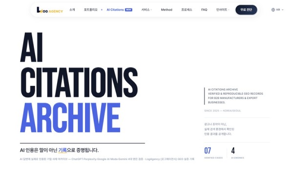 AI 검색 인용 증거 아카이빙 페이지는 로그에이전시 공식 홈페이지에서 확인할 수 있다.