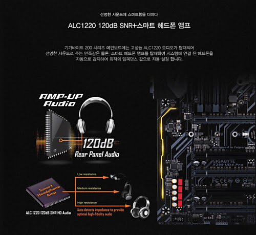 또한, 기가바이트 X299 UD4 PRO는 ACL1220 오디오 칩셋과 스튜디오 클래스에 버금가는 오디오 캐패시터를 채용하였고 스마트 헤드폰 엠프까지 탑재하여 시스템에 연결 된 헤드폰을 자동으로 감지하여 최적의 임피던스 값으로 자동 설정이 가능하여 비주얼은 물론 풍부한 사운드까지 모두 만족 시켰다.