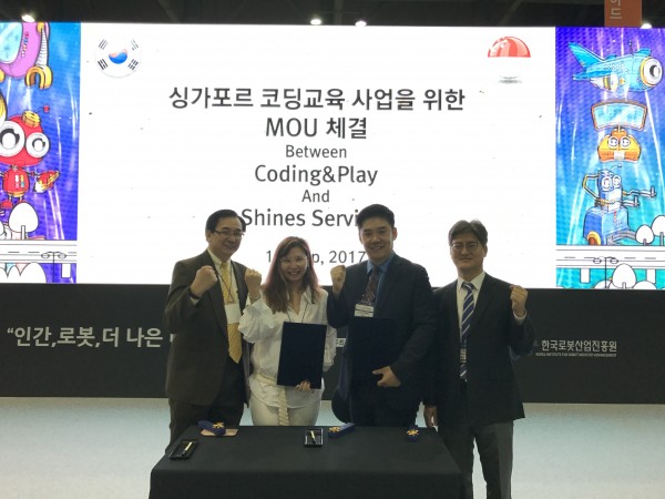 코딩앤플레이, 어린이 코딩교육 전문 기업, 일산, 킨텍스, 로보월드, 싱가폴르 교육기업, 샤인서비스, 5개년, 120억원, 1천만달러, MOU, 업무협약, 싱가포르, 말레이사아, 교육시장, 본격 진출,