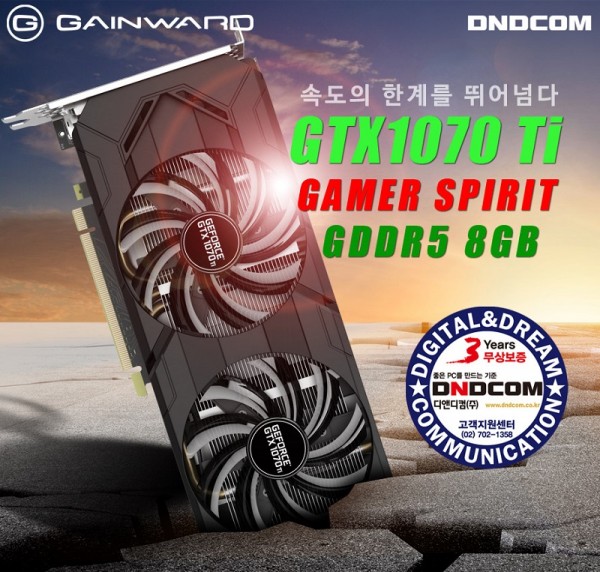 디앤디컴, dndcom, 게인워드, Gainward, 엔비디아, NVIDIA, 지포스 GTX1070 Ti, GeForce GTX1070 Ti, 지포스 GTX1070 Ti 게이머 스피릿 D5 8GB, 국내 출시,