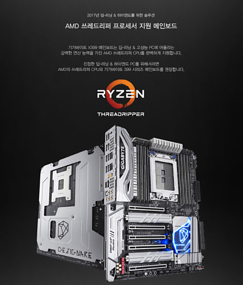 GIGABYTE Technology Co. LTD (이하 기가바이트)의 국내 공식 수입유통사인 제이씨현시스템(주)(대표:차현배)에서 AMD의 강력한 멀티 코어 퍼포먼스를 가진 THREADRIPPER(쓰레드리퍼) CPU를 지원하는 AMD X399 칩셋 메인보드 기가바이트 X399 DESIGNARE EX를 출시 하였다.