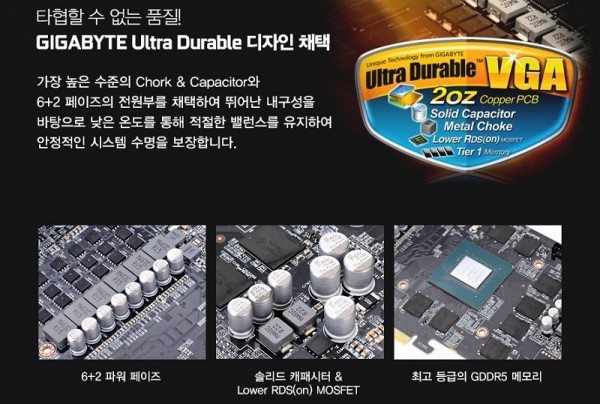 파스칼의 심장을 품은 GIGABYTE 지포스 GTX1070 Ti 윈드포스는 대세로 떠오른 가상현실 (Virtual Reality) 컨텐츠를 여유롭고 부드럽게 재생할 수 있는 뛰어난 성능을 갖추고 있으며, 이렇게 안정적인 동작이 가능할 수 있도록 탄탄한 6+2 파워 페이즈(전원부), 2 OZ 구리PCB 기판, 최고 등급의 솔리드 캐패시터, METAL CHOKES, Lower RDS mosfet, GDDR5 메모리 등을 탑재해 극한의 게이밍 환경에서 뛰어난 내구성과 긴 수명을 보장한다.