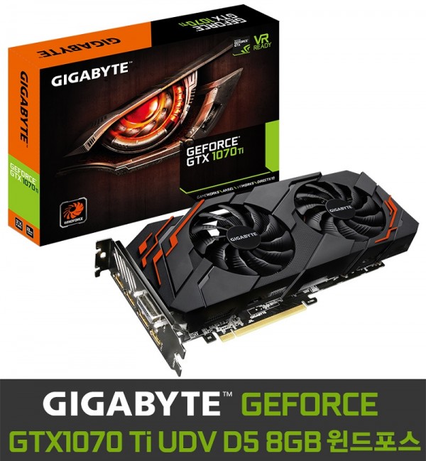 기가바이트 GTX1070 Ti 윈드포스는 하이엔드급 GPU 중 가성비가 가장 높은 평가를 받고 있는 지포스 GTX1070 Ti GPU를 엔진으로 탑재해 가격은 GTX1070과 비슷하면서도 성능은 상위급인 GTX1080의 강력한 게이밍 퍼포먼스에 버금가는 모습을 보여준다.