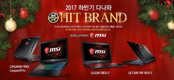 다나와는 판매 통계 분석 및 전문 카테고리 매니저의 심사를 거쳐2017년 하반기 히트브랜드 ‘게이밍 노트북’ 부문에 ‘MSI 게이밍 노트북’, 대표모델로 ‘MSI GP62MVR 7RFX Leopard Pro’, ‘MSI GL62M 7REX-i7’, ‘MSI GE73VR 7RF 레이더’ 등을 선정했다.