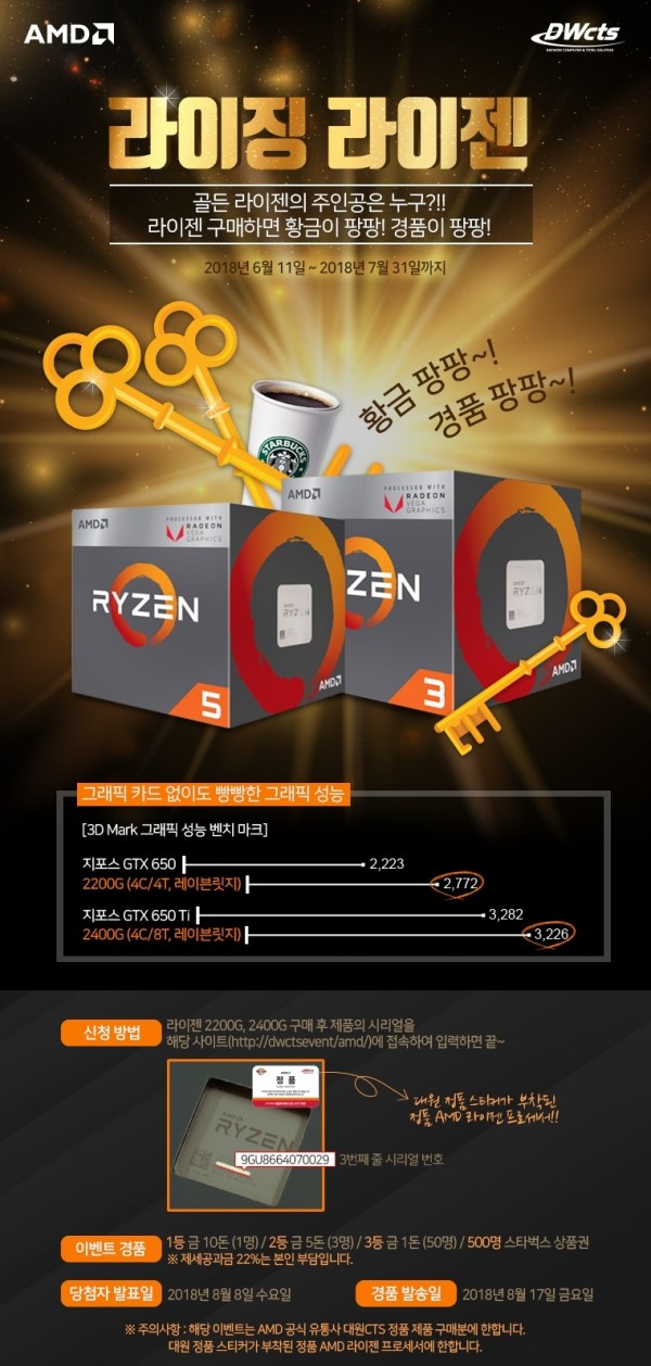 대원CTS, dwcts, AMD, 국내 공식 유통사, 베가, Vega, 라이젠 2200G, 라이젠 2400G, Ryzen 2200G, Ryzen 2400G, PC 조립업체, 골든 라이젠, 프로모션, 진행,