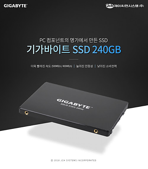 제이씨현시스템, 제이씨현, 기가바이트, GIGABYTE, SSD, 240GB, 출시, SSD 240GB, 낮은 소비전력, 발열, 무소음, 무진동, 무상 3년 워런티,