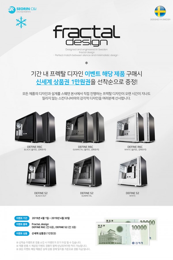 서린씨앤아이, seorincni, 프렉탈디자인, Fractal Design, 디파인 시리즈, Define Series, PC케이스, 제품 구매자 전원, 신세계 상품권, 증정, 이벤트, 진행,