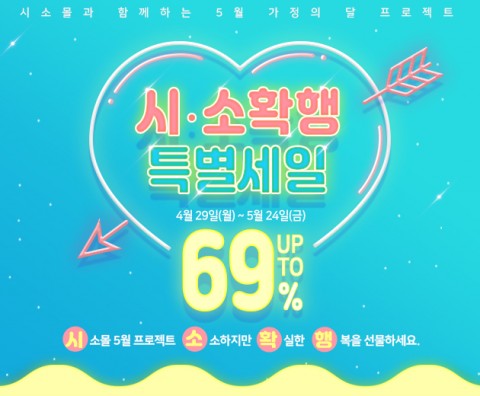 5월 가정의 달을 맞아 마련된 이번 이벤트의 콘셉트는 HP 워크스테이션, HP 모니터, 삼성전자 메모리카드 및 뽀로로 칼라 칠판, 유니텍 안마기기, 네스카페 커피머신, 매직쿡 오븐, 가이타이너 인덕션 등 다양한 가전 제품을 어린이날, 어버이날, 부부/성년의 날 등 기념일에 맞춰 선물하는 것이다. 해당 제품들은 시소확행 이벤트 기간 동안 시소몰 사이트를 통해 최대 69% 할인된 가격으로 구입할 수 있다.