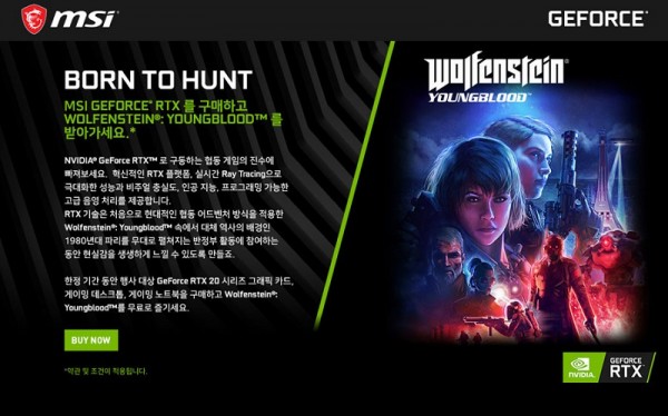 MSI, 지포스 RTX 2060/ 2070/ 2080/ 2080 Ti 그래픽카드 구입하면 울펜슈타인: 영블러드 게임코드 증정
