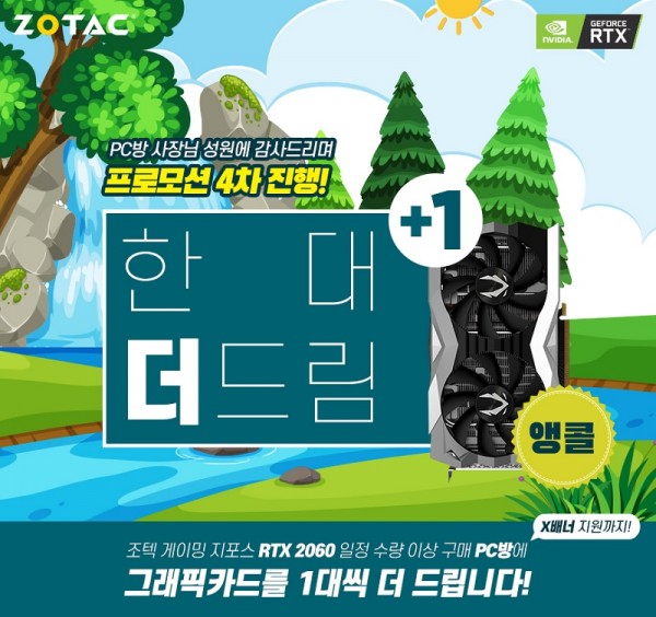 조텍, 조텍코리아, ZOTAC, ZOTAC Korea, 전국 PC방, 게이밍 지포스 그래픽카드, 일정 수랑 이상 구매, 해당 그래픽카드 1대, 무상 증정, 더드림 PC방 프로모션, 7월 10일부터, 4차 앵콜 진행